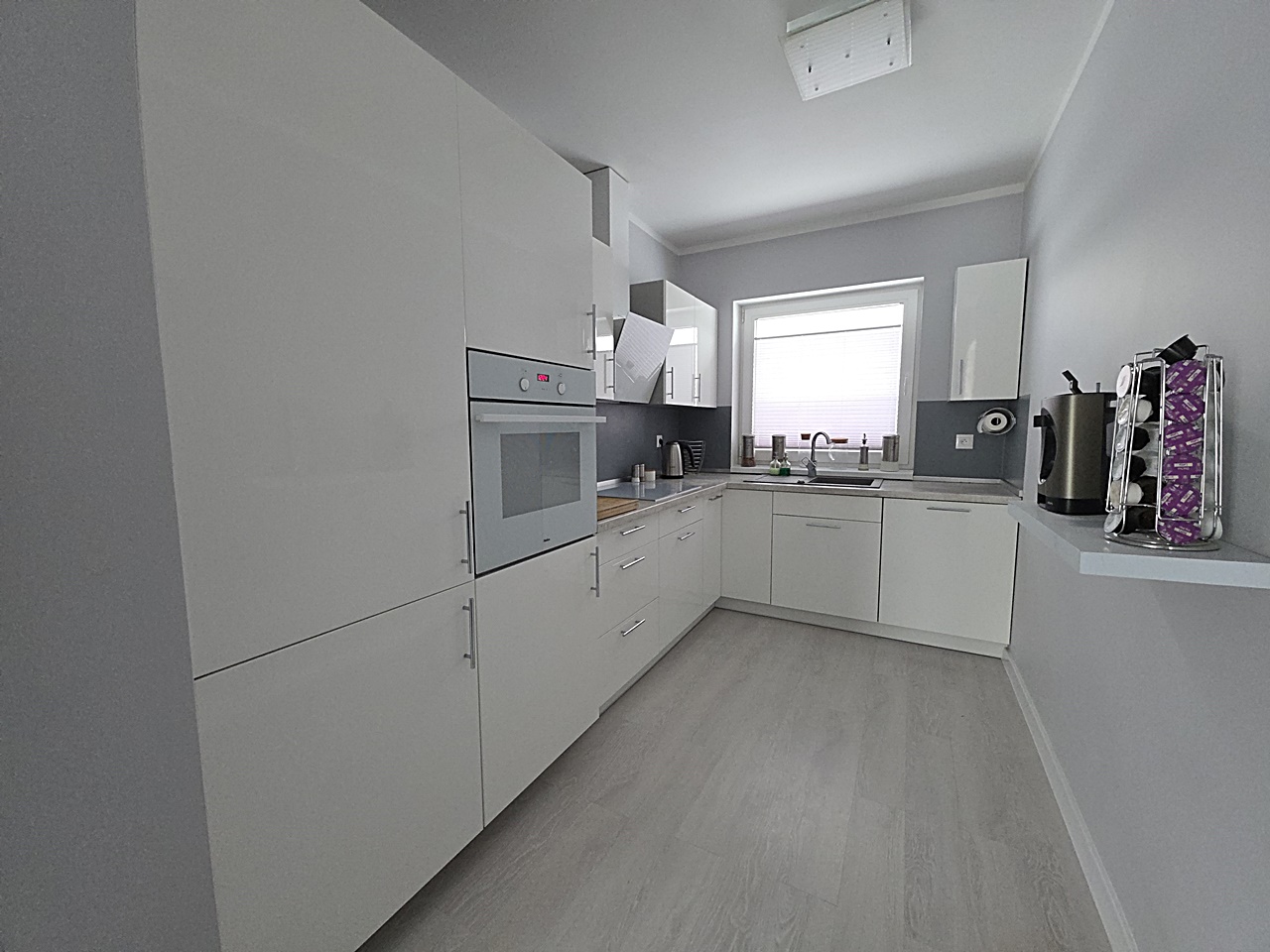 - Otwarta kuchnia, wyposażona w pełną zabudowę pod wymiar oraz wysokiej klasy sprzęt AGD (lodówka, piekarnik, mikrofalówka, płyta grzewcza, okap, zmywarka).