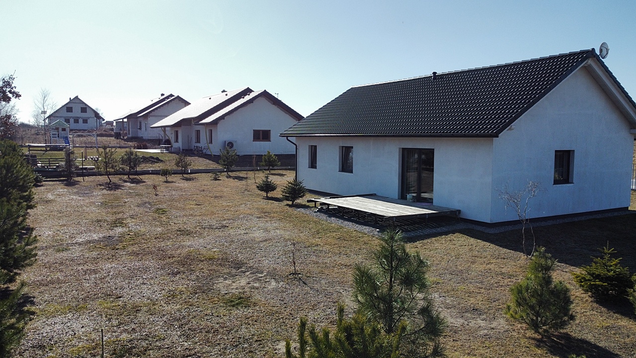 - Izolacja- Okna PCV trzyszybowe, ocieplenie budynku warstwą 15 cm styropianu oraz dach pokryty wysokiej jakości dachówką Brass.