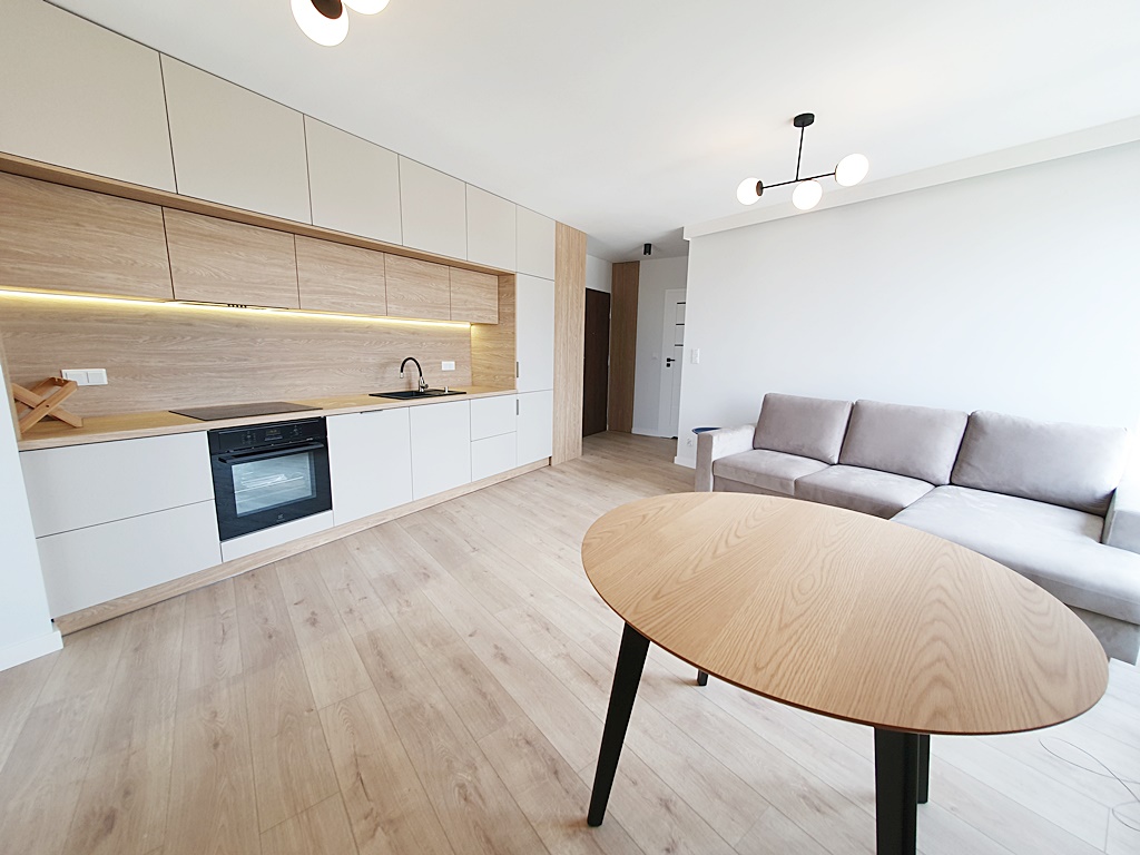 - salon połączony z kuchnią, i wyjściem na balkon,