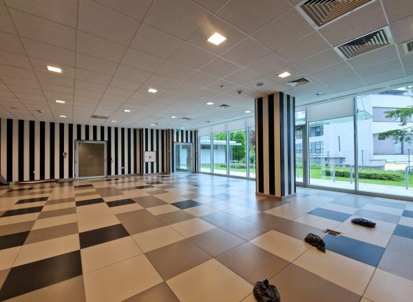 - dużego pomieszczenia w szeroką witryną wzdłuż ulicy