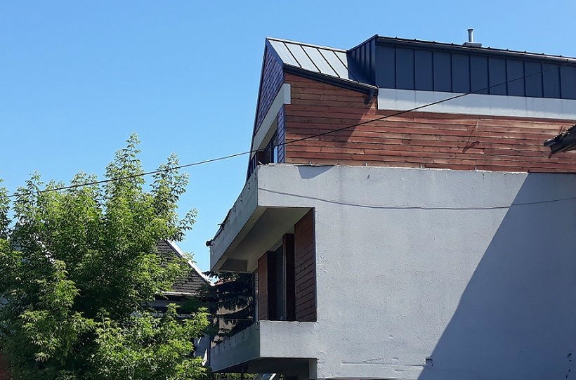 Dach: ocieplony warstwą natryskową, blacha tytanowa firmy Ruuki