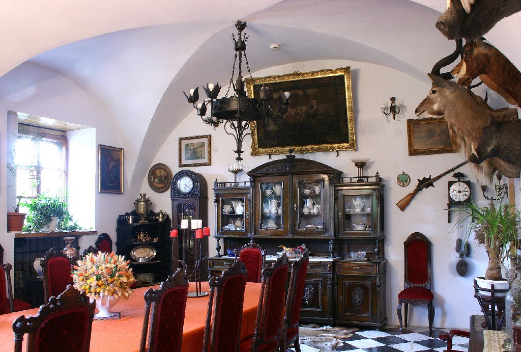 - sala Myśliwska - niewielka sala znajdująca się w podziemiach.
